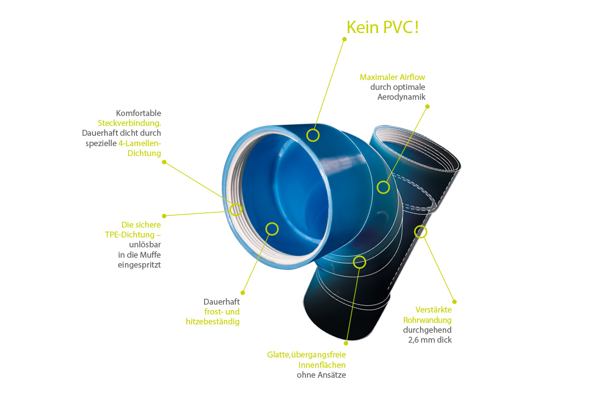 Das Vac Up Rohrsystem ist das weltweit erste und einzige Polypropylen-Vakuumrohrsystem (50/50,8 mm Ø), das speziell für den Betrieb von Zentralstaubsauganalgen entwickelt wurde.